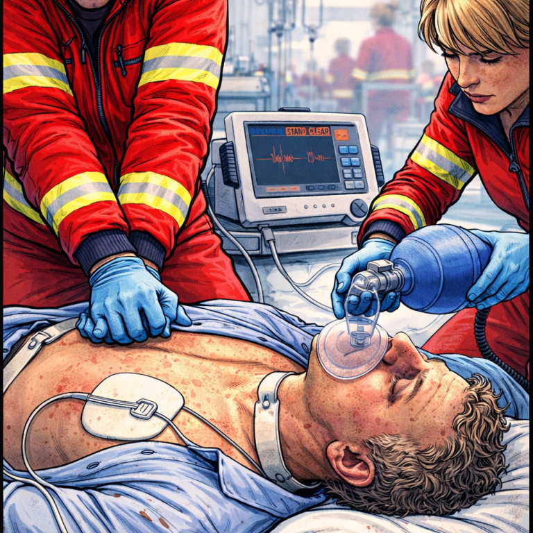 Wiederbelebungssituation (Reanimation) mittels Herzdruckmassage und Maskenbeatmung