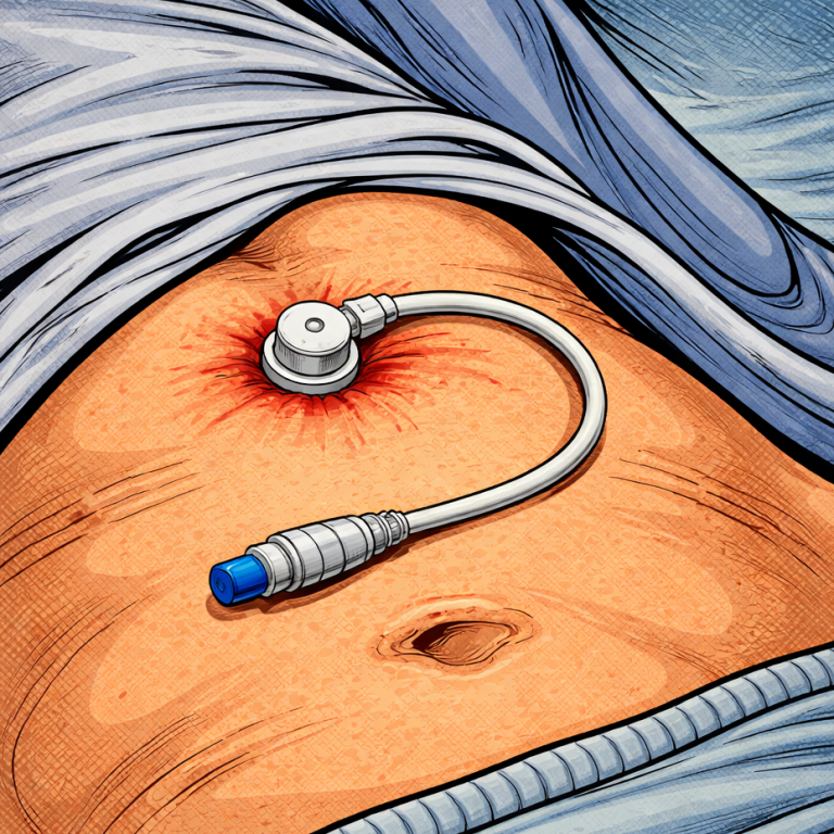 künstlicher Darmausgang mit aufgeklebtem Beutelsystem
