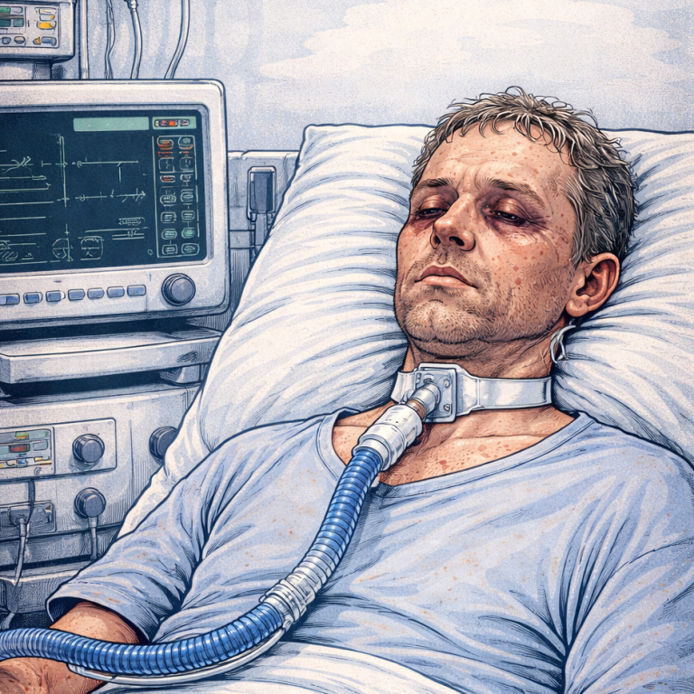 langzeitbeatmeter Patient in einer Intensivpflegeeinrichtung